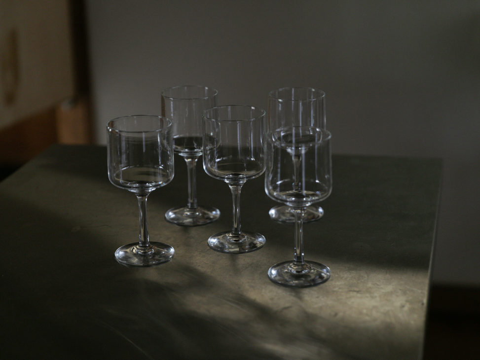 何でも丸より角のフォルムの方がしっくりくると思っていました。ワイングラスも角ばったものが欲しくて、蠣﨑マコトさんに作ってもらいました。