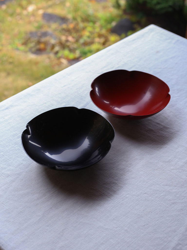 四弁輪花浅鉢(黒/赤) 49,500円