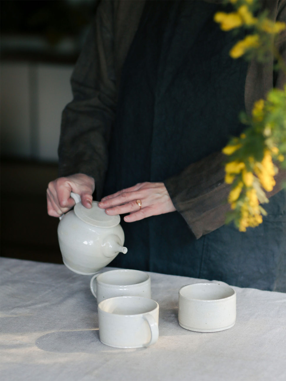 デザインは同じでも毎年少しずつ微妙に形が変化している作品です。 ポットはシュッとしたスマートに変化し、マグは高さが5ミリ程低くなりこちらも佇まい良く変身致しました。