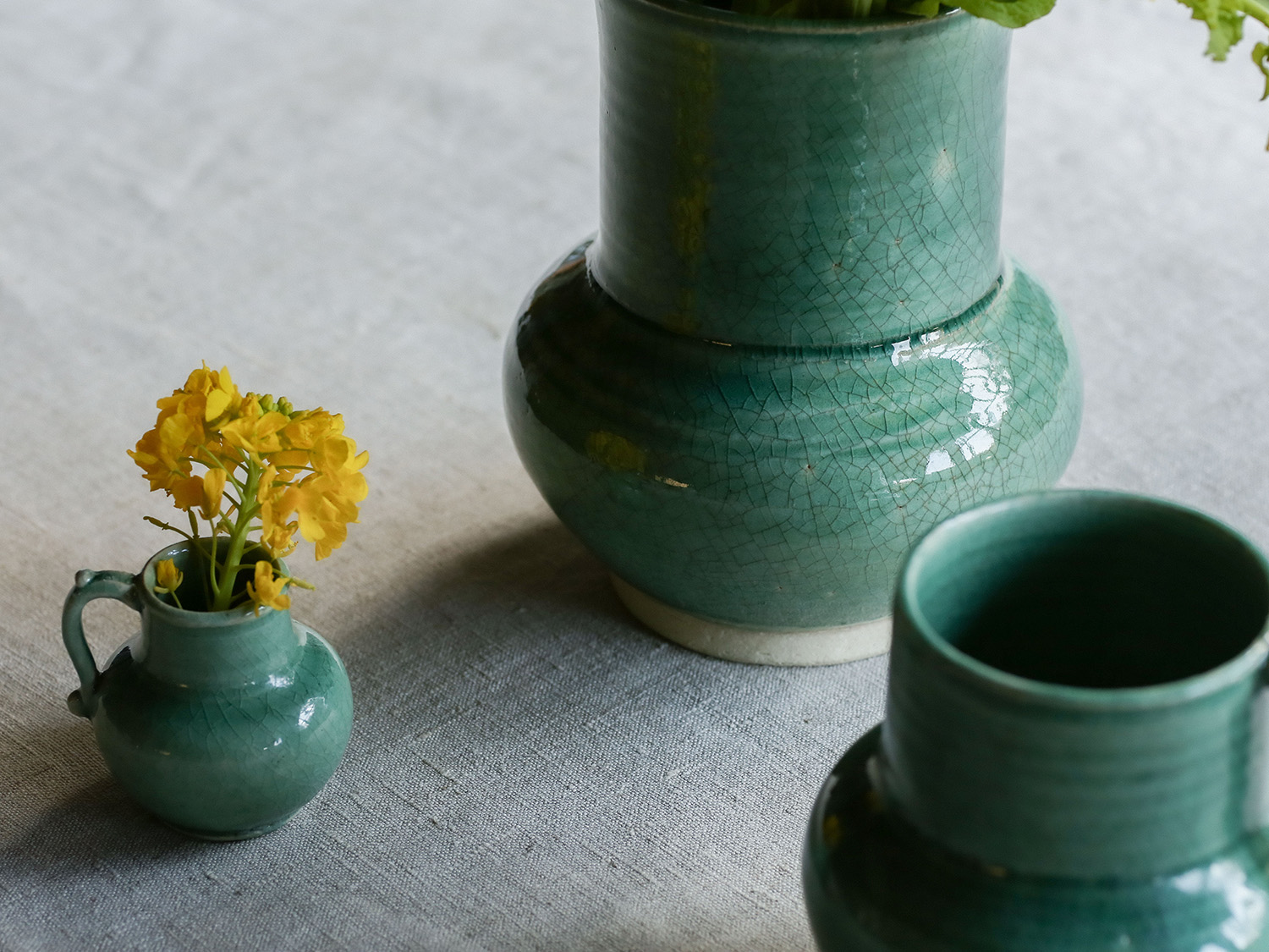 緑釉のお色は様々なお花にとても合わせ易いと実感致します。